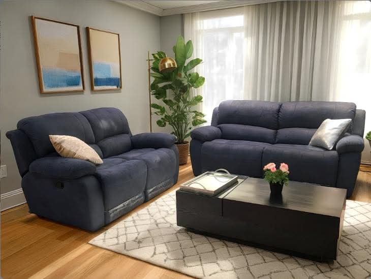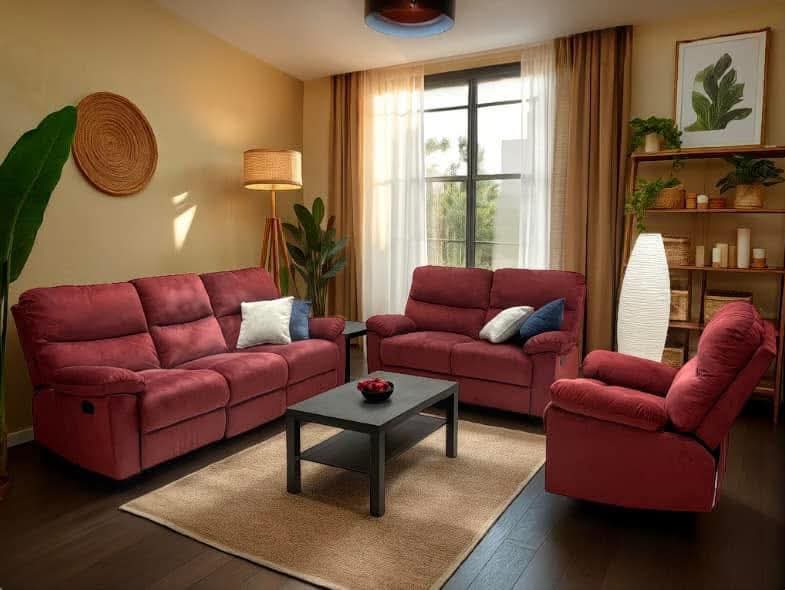 احلى اثاث هنا الطقم كنبه ٣ + كنبه ٢ + كرسي، فيهم ٥ مكنزمات.. ممكن