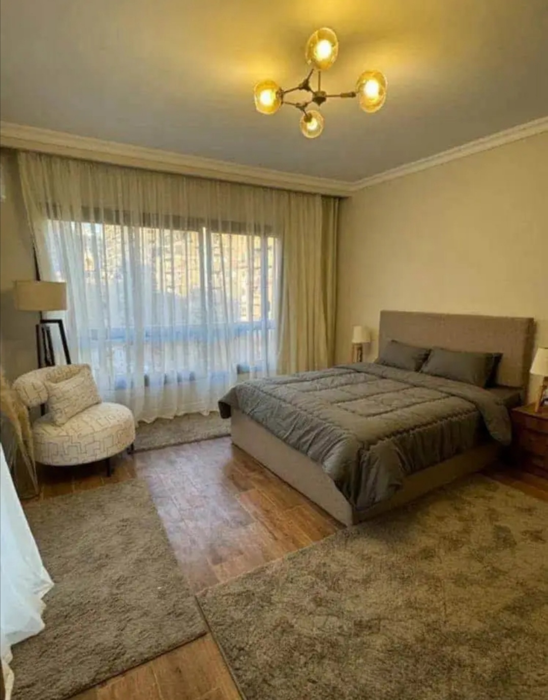 الشقة مساحتها ١٧٠ متر ( ٣غرف )