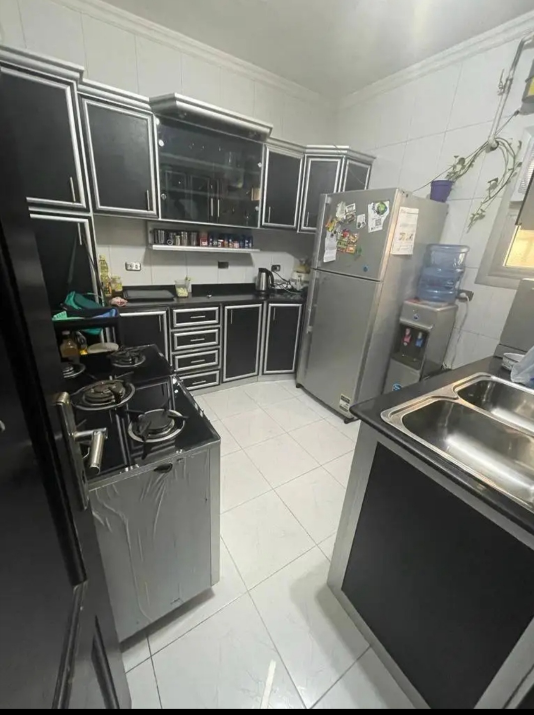 • شقه للايجار نصف مفروش بالمطبخ وتكفيات