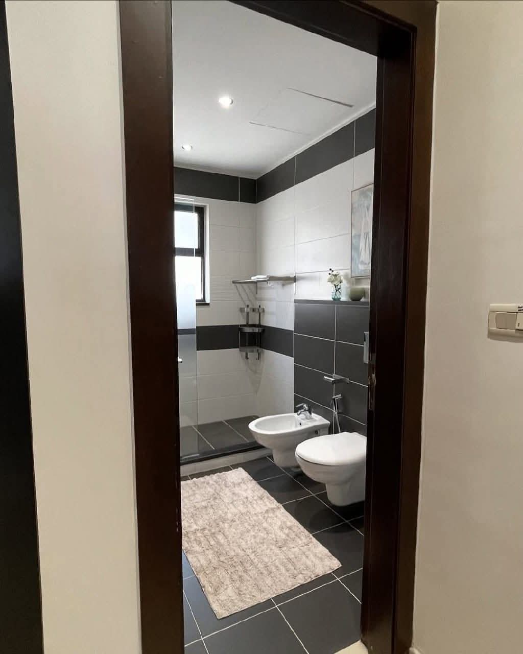 • شقه للايجار نصف مفروش بالمطبخ وتكفيات