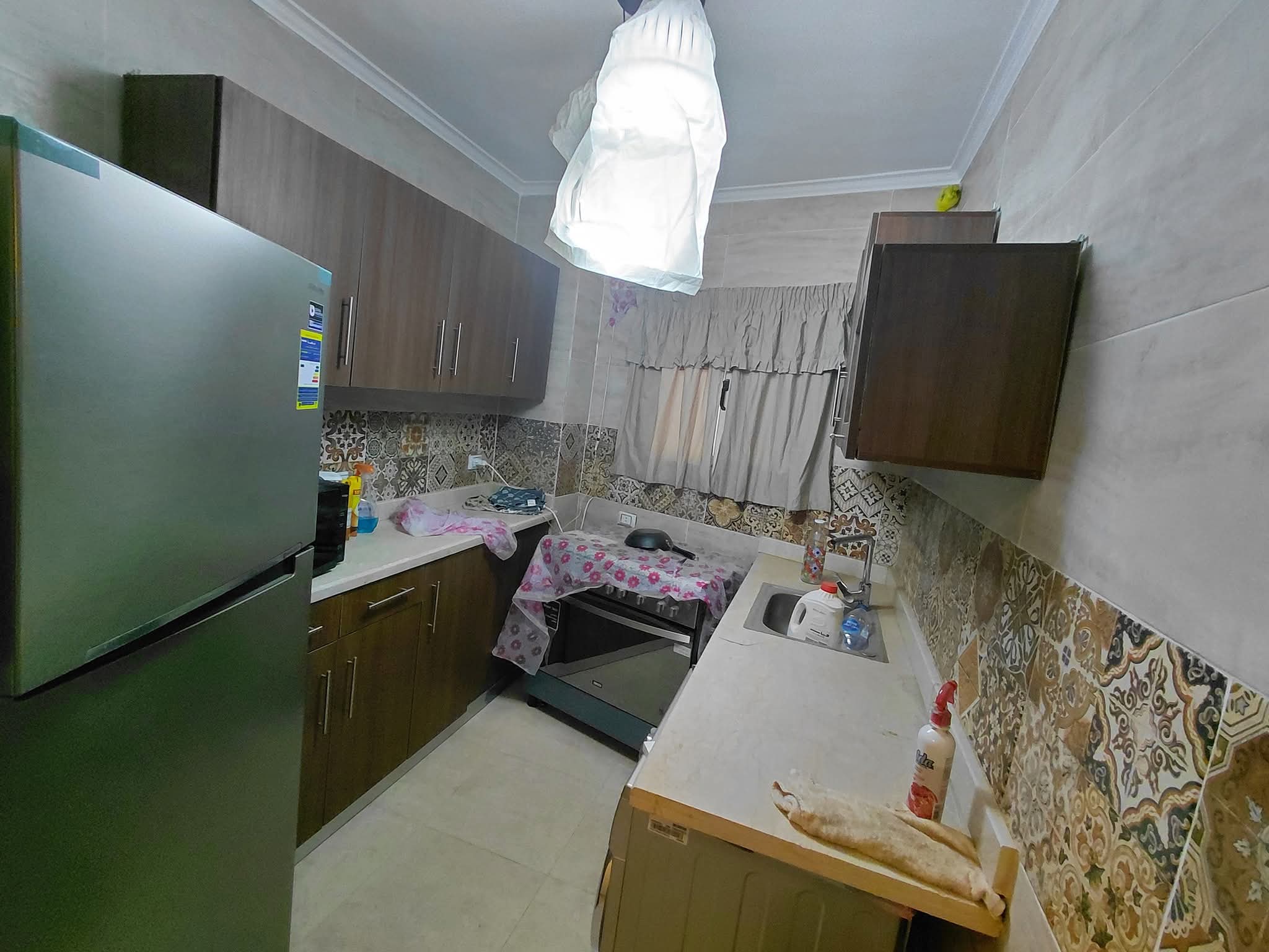 • شقه للايجار نصف مفروش بالمطبخ وتكفيات