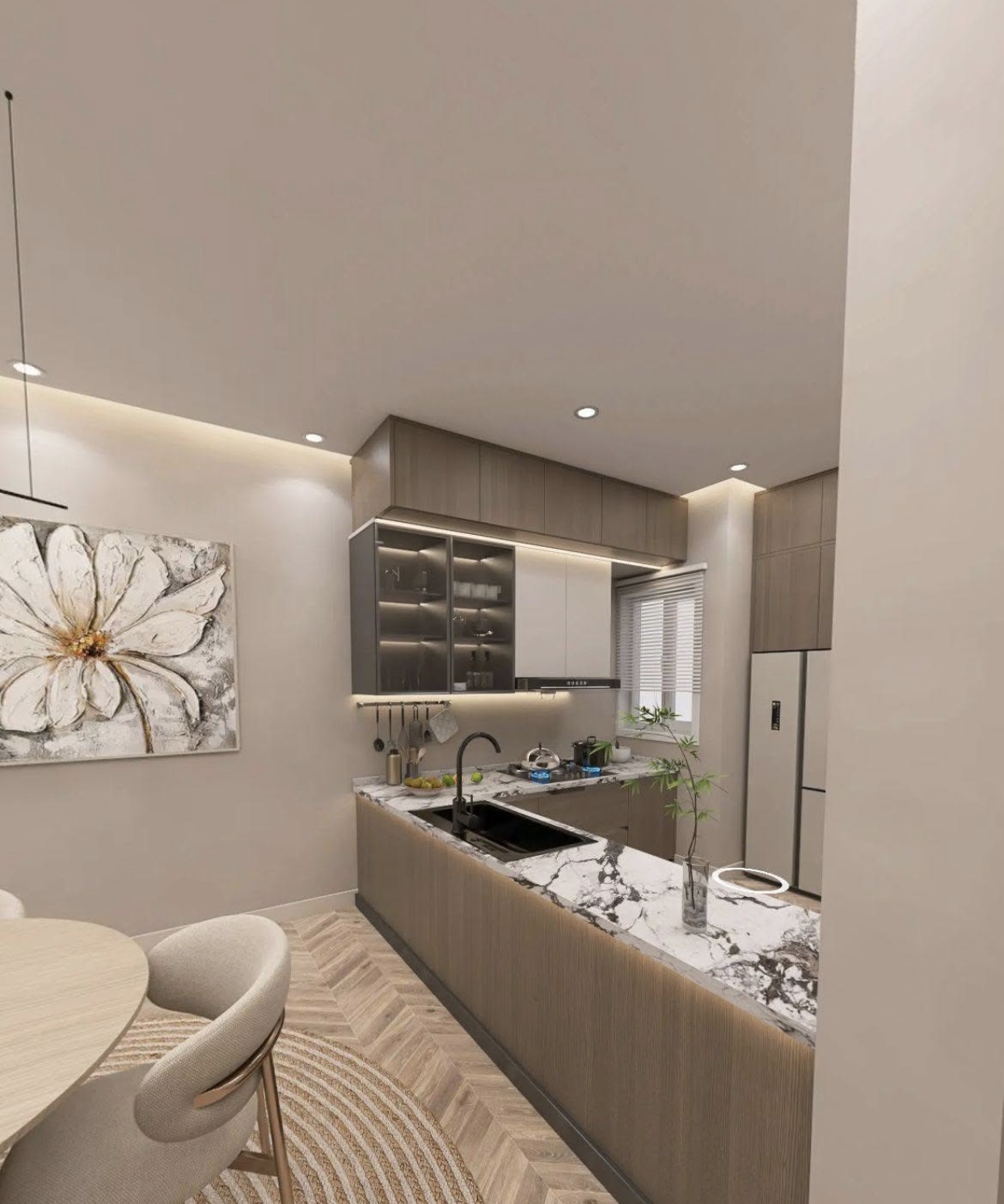 المساحه 152 متر ( مكونه من 3 غرف + 2 حمام + رسيبشن واسع + مطبخ )