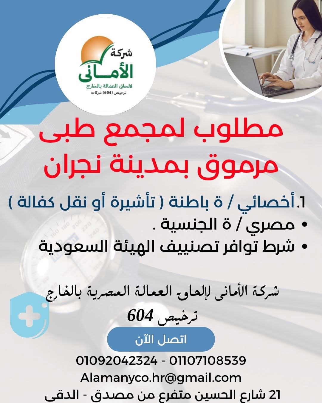 مطلوب 2 ويتر بمركز طبي كبير بالمنصوره